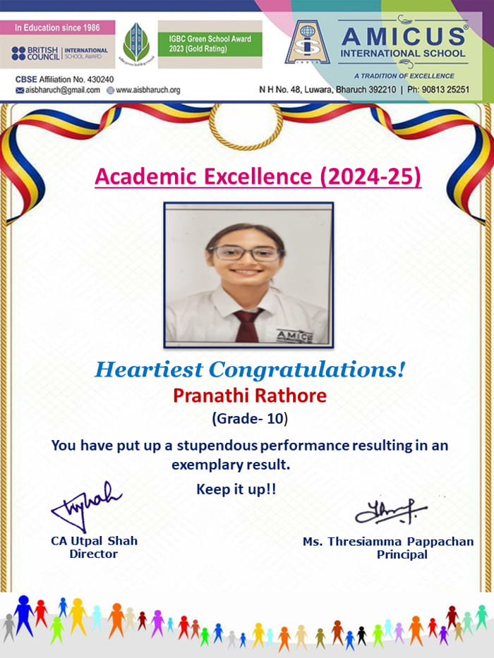 In recognition of this achievement a cash Prize - Rs. 3500 was awarded by the School.