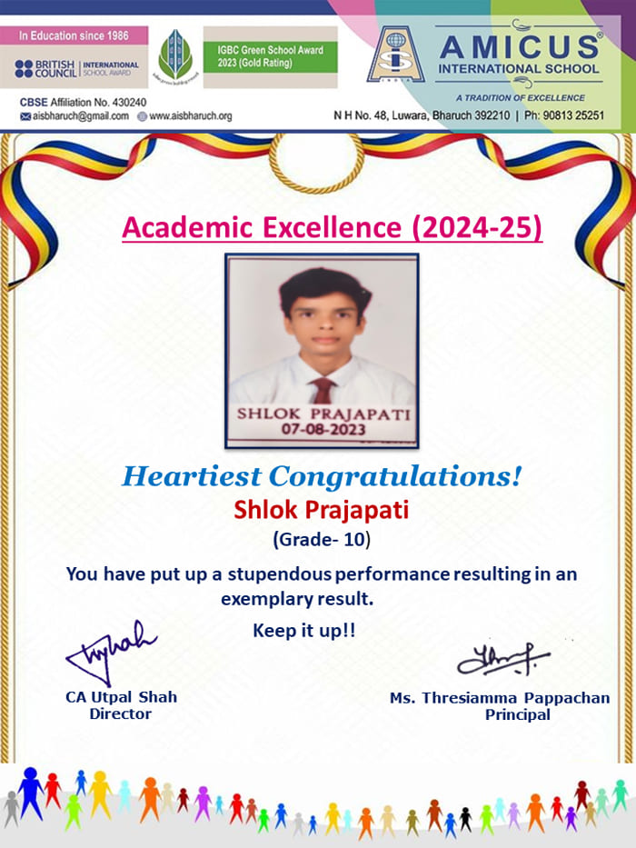 In recognition of this achievement a cash Prize - Rs. 3500 was awarded by the School.
